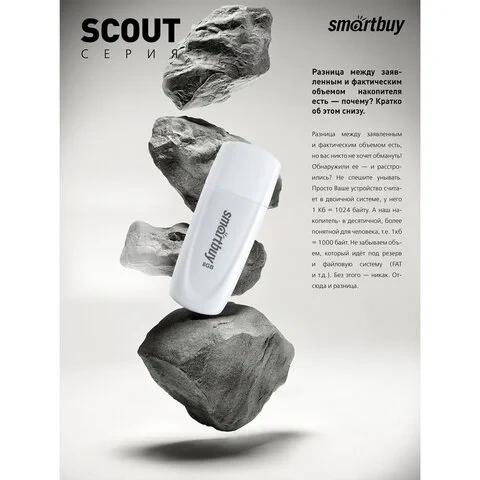 Предоставляет место хранения для файлов: фотографий, видеозаписей, презентаций, текстовых документов. Флешка SMARTBUY Scout объемом 8 Гб совместима со всеми операционными системами.