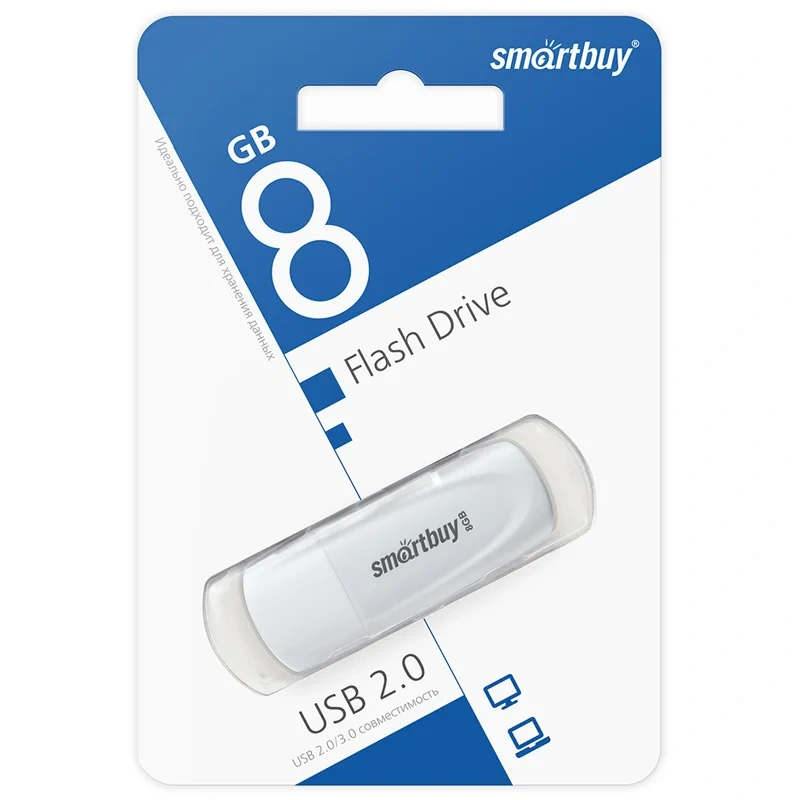 Память Smart Buy 'Scout' 8GB, USB 2.0 Flash Drive, белый
