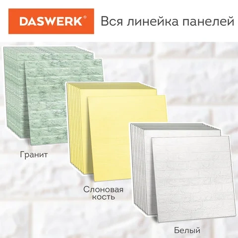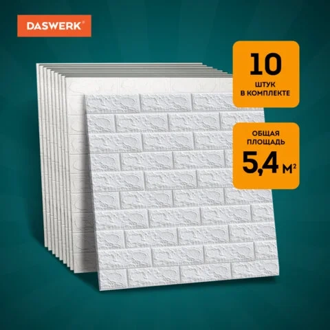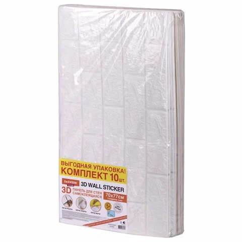 Панели для стен / стеновые панели 3D самоклеящиеся, 'Белый кирпич', 10шт, 70х77см, DASWERK, 607988