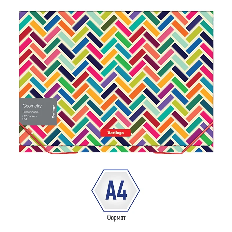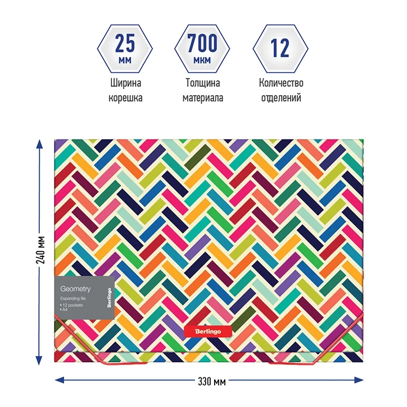 Папка 12 отделений Berlingo 'Geometry' A4, 330*240*25мм, 700мкм, на резинке, c рисунком
