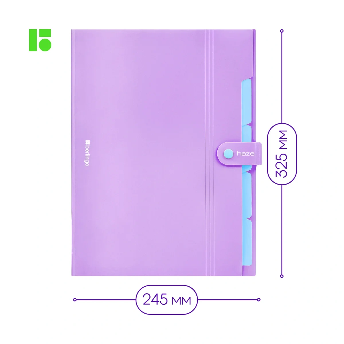 Папка 5 отделений Berlingo 'Haze', А4, 600мкм, на кнопке, сиреневая