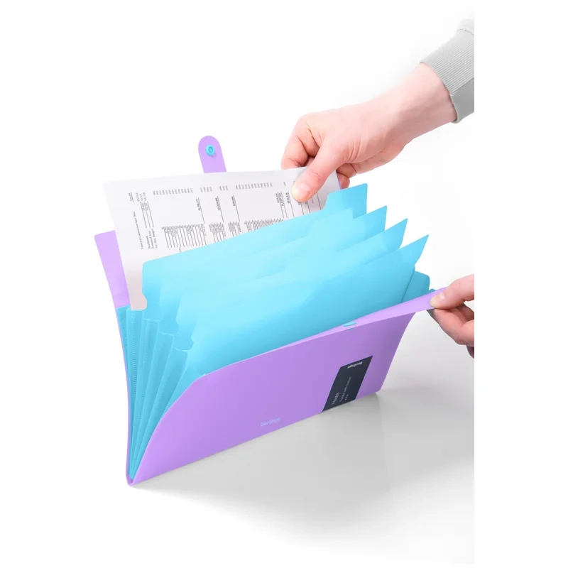 Папка пластиковая на кнопке с отделениями Berlingo 'Haze' формата А4 с рисунком. Цвет обложки - сиреневый. 5 внутренних отделений для удобного хранения и организации документов. Каждое отделение с индексным полем, позволяет сортировать документы по темам или алфавиту. Надежная застежка-кнопка. Контрастный голубой цвет отделений. Быстрый доступ к содержимому. Изготовлена из высококачественного полипропилена с матовой текстурой поверхности 'песок', на которой не видно отпечатков пальцев и мелких царапин. Предназначена для хранения и транспортировки документов. Толщина обложки 600мкм. Вмещает до 200 листов. Размер 245*325*10. Упакована в индивидуальный прозрачный пакет по форме.
