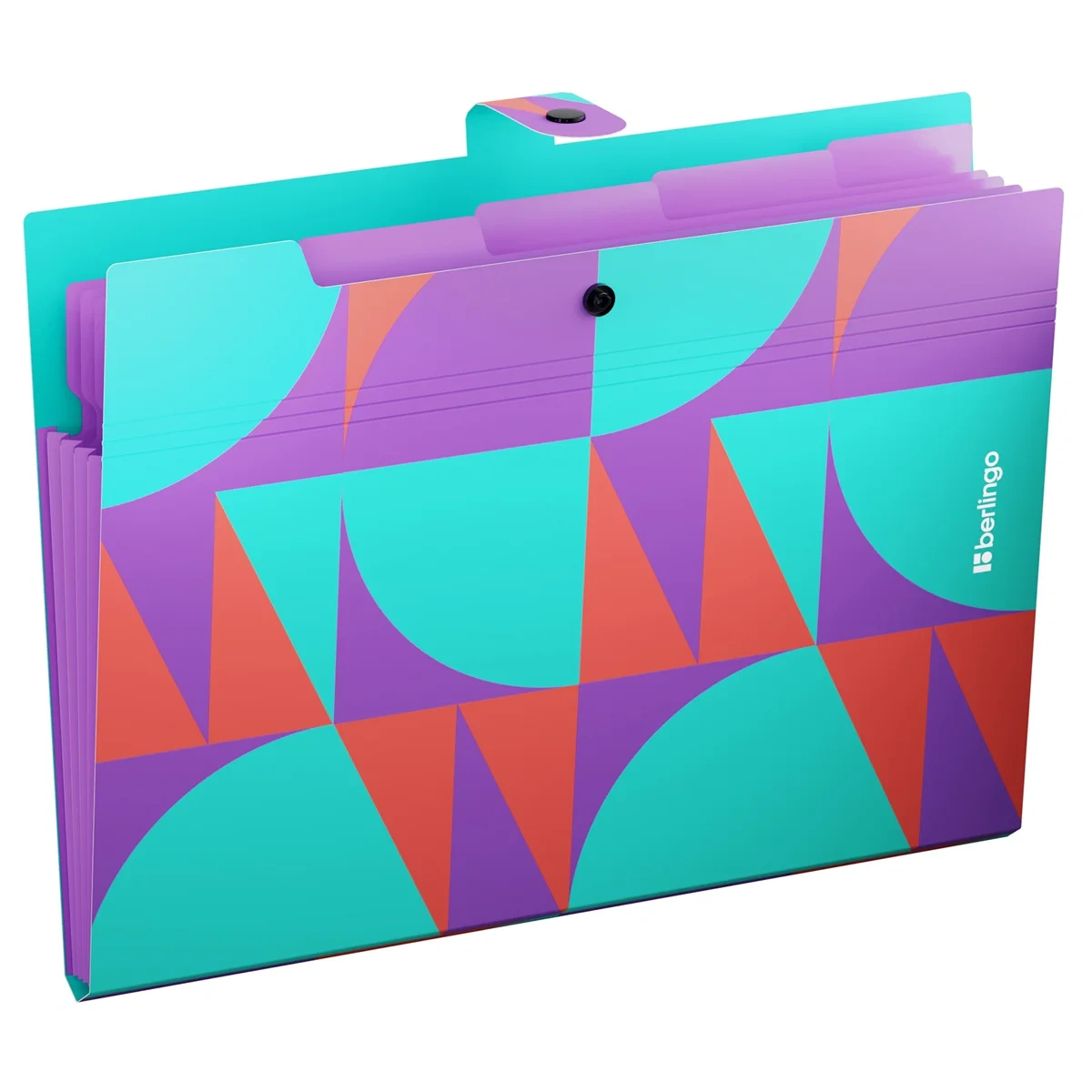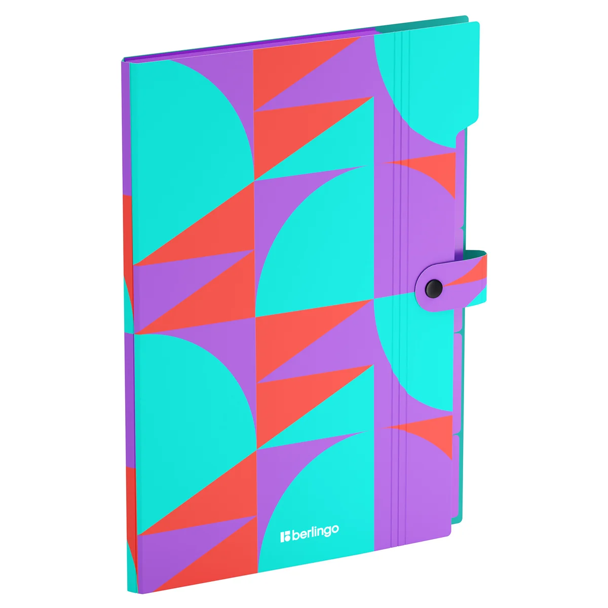 Папка 5 отделений Berlingo 'Neonometry', А4, 600мкм, на кнопке, с рисунком