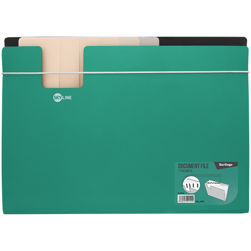 Папка 7 отделений Berlingo 'Skyline', А4, 700мкм, на резинке, зеленая