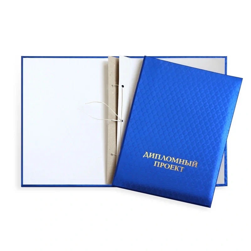 Папка адресная Дипломный проект А4 синяя. Обложка адресной папки изготовлена из переплетного картона, оклеенного полипропиленом синего цвета. Внутри расположен гребешок со шнурком для крепления листов или файлов. Выклейка - белая бумага. Надпись на лицевой стороне выполнена золотистыми буквами методом тиснения. Формат адресной папки - А4. Папка предназначена для оформления дипломных работ в университетах и колледжах. Она идеально подходит для учеников, студентов и выпускников, которым необходимо надежное хранение и презентация дипломных проектов. Благодаря прочному материалу и стильному дизайну она придает документам профессиональный вид.
