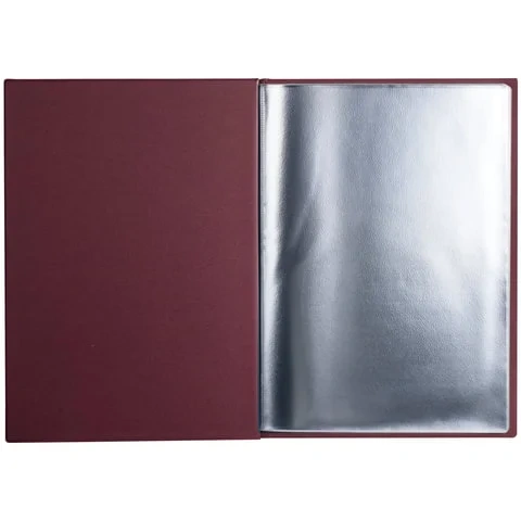 Папка предназначена для использования в кафе и ресторанах. Износоустойчивые материалы обеспечивают длительную эксплуатацию даже при интенсивном использовании.Характеристики 10 файлов-карманов формата А4. Расстояние между отверстиями в файле - 108 мм. Тиснение 'Меню' фольгой. Размер - 220х320 мм. Цвет - бордовый. Производитель - Россия.