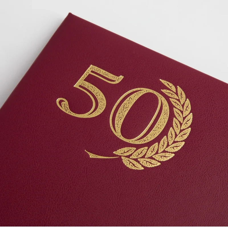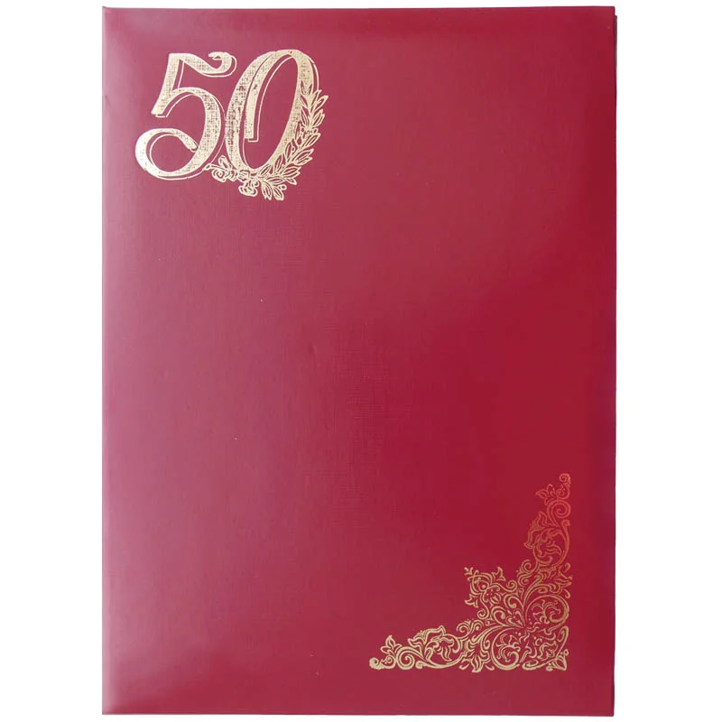 Папка адресная OfficeSpace серии «50 лет» формата А4 идеально подойдёт для поздравления с юбилеем. Изделие выполнено из прочного картона красного цвета с покрытием из бумвинила. Обложка изделия украшена тиснением из фольги. Внутренний способ крепления документов – лента-ляссе. Папка выпускается в индивидуальной упаковке.