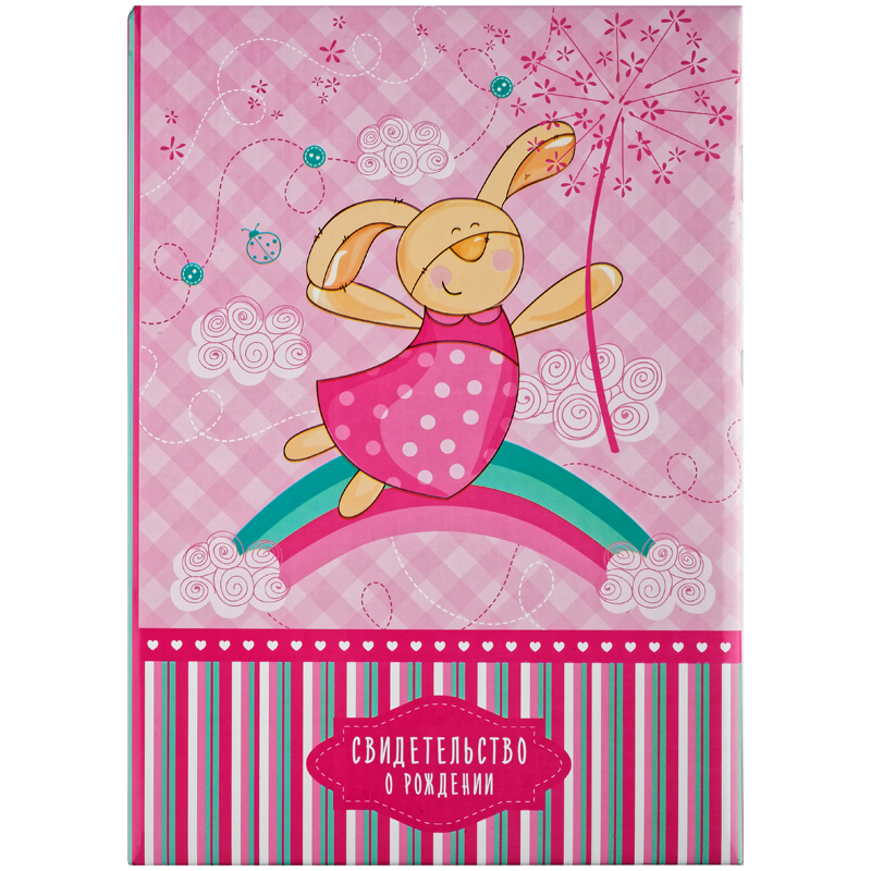 Папка адресная Officespace Свидетельство о рождении Зайчик, А4, для девочек