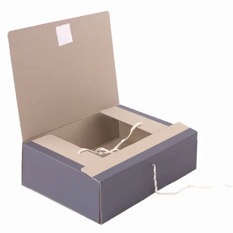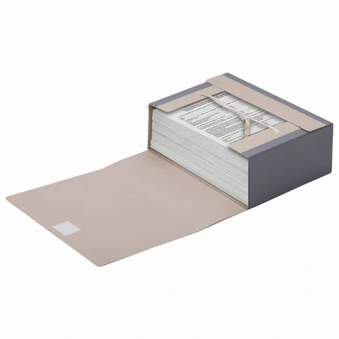 Папка стандартного формата А4 вмещает до 1200 листов. Изготовлена из переплетного картона с покрытием из бумвинила. Ширина корешка составляет 12 мм. На лицевой стороне есть поля для подписывания. Закрывается с помощью 4-х тканевых завязок.