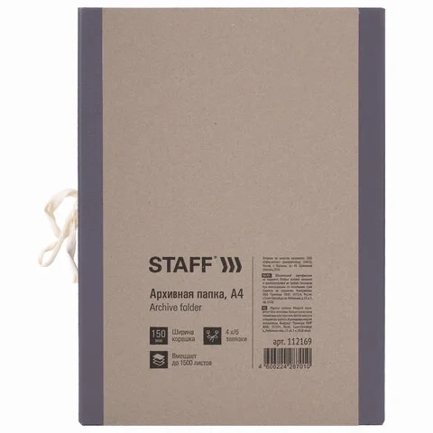 Папка архивная А4 'Форма 21', 150 мм, переплетный картон/бумвинил, завязки, до 1500 л., STAFF, 11216