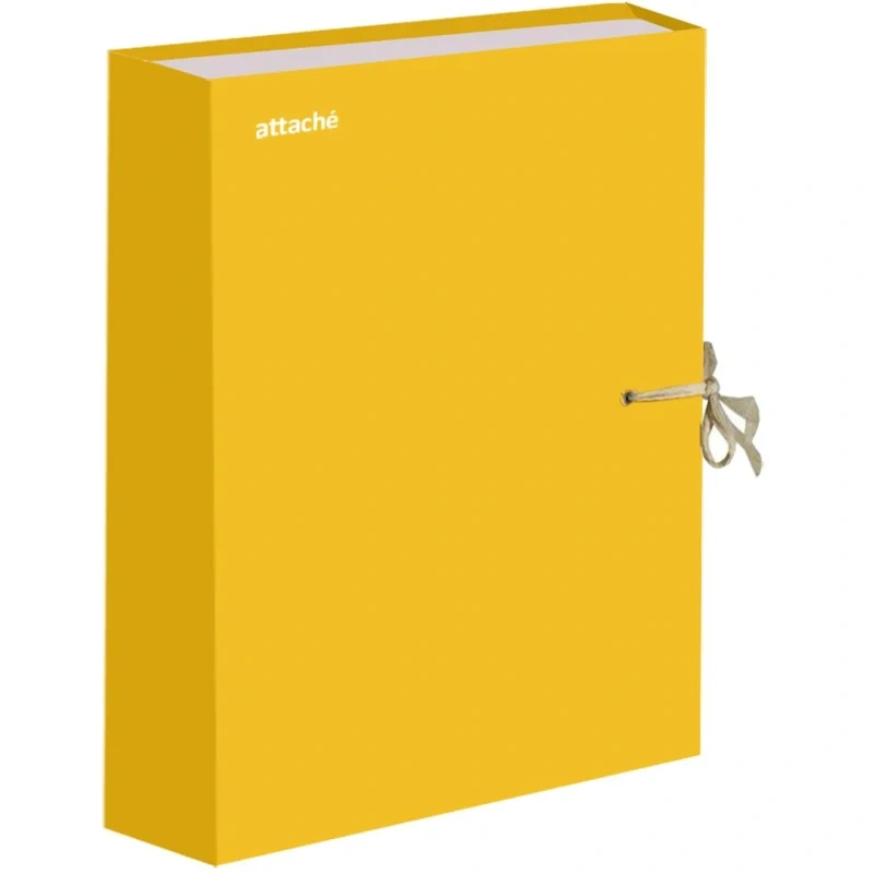 Складная папка архивная Attache Bright Сolours с корешком 50 мм изготовлена из ламинированного картона желтого цвета, имеет 2 хлопчатобумажные завязки. Папка вмещает до 500 листов стандартной плотности. Внешний размер изделия — 225×310×55 мм. Внутренний размер изделия — 220×305×50 мм