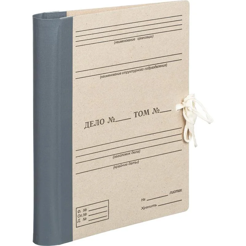 Папка архивная для переплета OfficeSpace выполнена из плотного картона с печатью на обложке «ДЕЛО». Корешок шириной 50 мм изготовлен из бумвинила серого цвета. Размер: 320*225*50 мм. Внутренние гребешки с 4 отверстиями позволяют подшивать документы с помощью тесьмы или механизма-скоросшивателя. В закрытом виде фиксируется на 2 завязках.