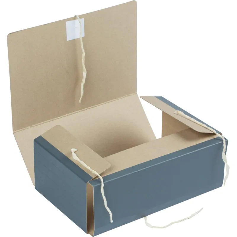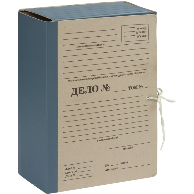 Складная папка архивная изготовлена из переплетного картона, корешок — бумвинил. Папка имеет гибкий корешок и толщина папки растет по мере заполнения. В закрытом виде фиксируется с помощью четырех хлопчатобумажных завязок. Ширина корешка — 120 мм. Папка вмещает 1200 листов стандартной плотности. Позволяет надежно хранить документы как в вертикальном, так и в горизонтальном положении. Размер изделия — 230×320×120 мм.