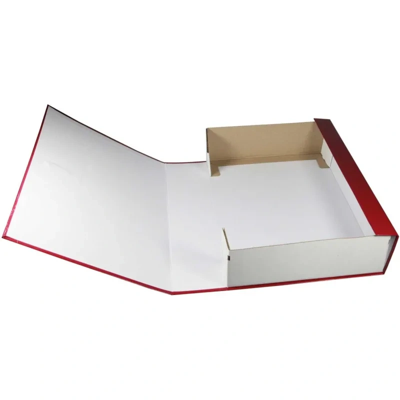 Складной архивный короб Attache (Attache Economy) формата А4 изготовлен из переплётного картона, снаружи покрыт бумвинилом бордового цвета (материал на основе ПВХ). В закрытом виде фиксируется с помощью двух хлопчатобумажных завязок. Внутренние стойки-упоры выполнены из гофрокартона. Короб вмещает до 1000 листов стандартной плотности, ширина корешка — 100 мм. Позволяет надежно хранить документы как в вертикальном, так и в горизонтальном положении. Внутренний размер: 220×100×310 мм.