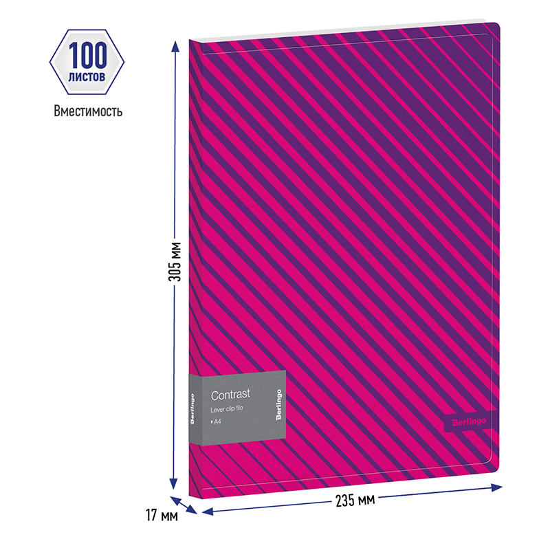 Папка c зажимом Berlingo 'Contrast' А4, пластик, 17мм, 600мкм, с внутр. карманом, фиолетовая