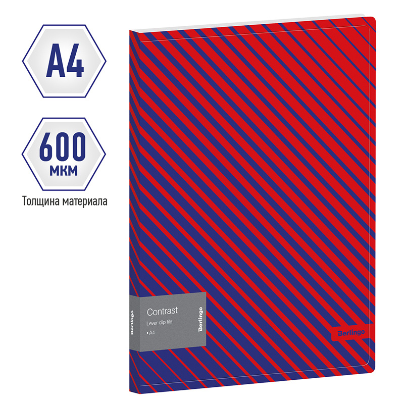 Папка c зажимом Berlingo 'Contrast' А4, пластик, 17мм, 600мкм, с внутр. карманом, красная