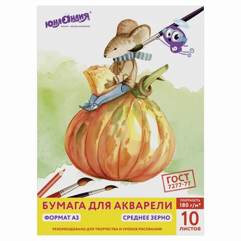 Папка для акварели БОЛЬШОГО ФОРМАТА А3, 10 л., 180 г/м2, ЮНЛАНДИЯ, 297х420 мм, 'Мышонок', 111066
