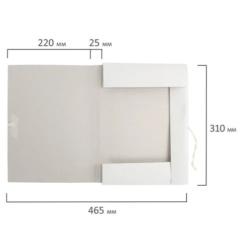 Папка стандартного формата А4 вмещает до 200 листов. Изготовлена из немелованного картона плотностью 440 г/м2. Ширина корешка составляет 25 мм. На лицевой стороне есть поля для подписывания. Поставляется в гофрокоробе.