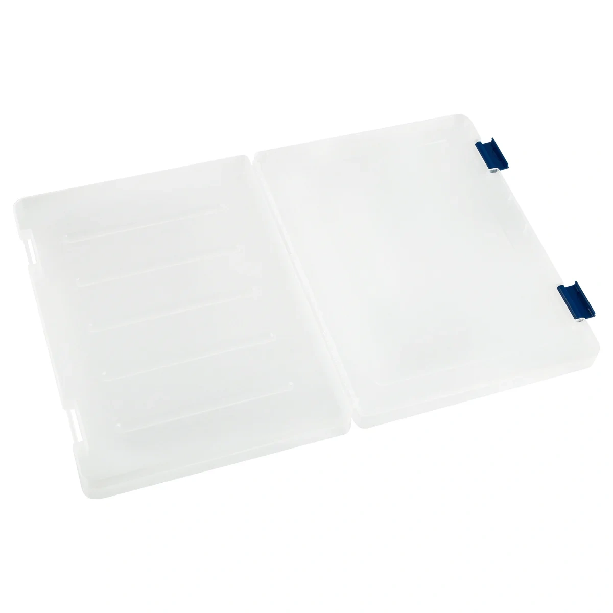 Папка для документов СТАММ предназначена для хранения и переноски бумаг формата А4. Изделие размером 230*305*23 мм вмещает до 100 листов. Лёгкая и прочная папка изготовлена из качественного полипропилена. Корпус папки оборудован двумя надёжными защёлками. Изделие поставляется в индивидуальной упаковке в термоусадочной плёнке. Цвет папки - прозрачный. Цвет защёлок - синий.
