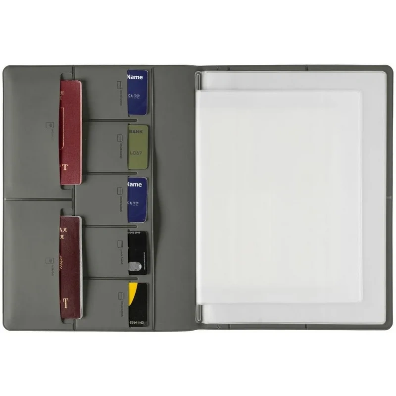Постоянно теряете документы? Храните все в одном месте - в удобном органайзере Devon Maxi. В него можно сложить документы для одного человека, пары или семьи. В папке - 6 карманов для паспорта или других документов, 5 карманов для пластиковых карт и 20 вкладышей разного размера для остальных ценных бумаг. Свидетельств о рождении, страховые свидетельства, удостоверения, СНИЛС, медицинские полисы - в папку поместится все. Размеры: 23,5х32,5х0,8 см. Материал: искусственная кожа. Материал: искусственная кожа Размер: 23,5х32,5х0,8 см Цвет: серый