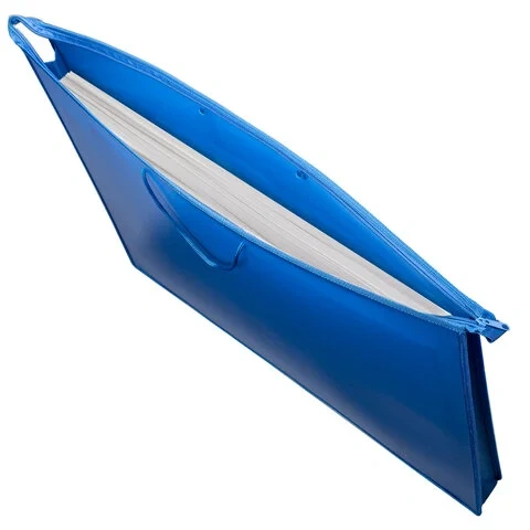 Для удобства переноски папка снабжена ручками. Внизу и по бокам имеется вставка из прочного полиэстера, которая позволяет увеличить объем папки.