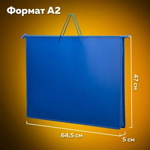 Папка для рисунков и чертежей на молнии с ручками ПИФАГОР А2, 1 отделение, пластик, ручки-шнурок, си