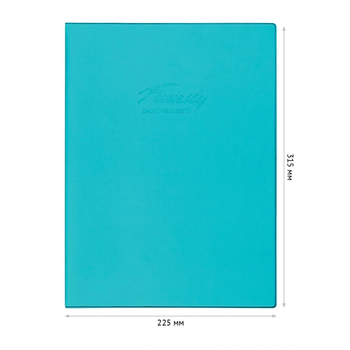 Папка для семейных документов А4, OfficeSpace, искусств. кожа, бирюзовая, инд. упаковка, ШК