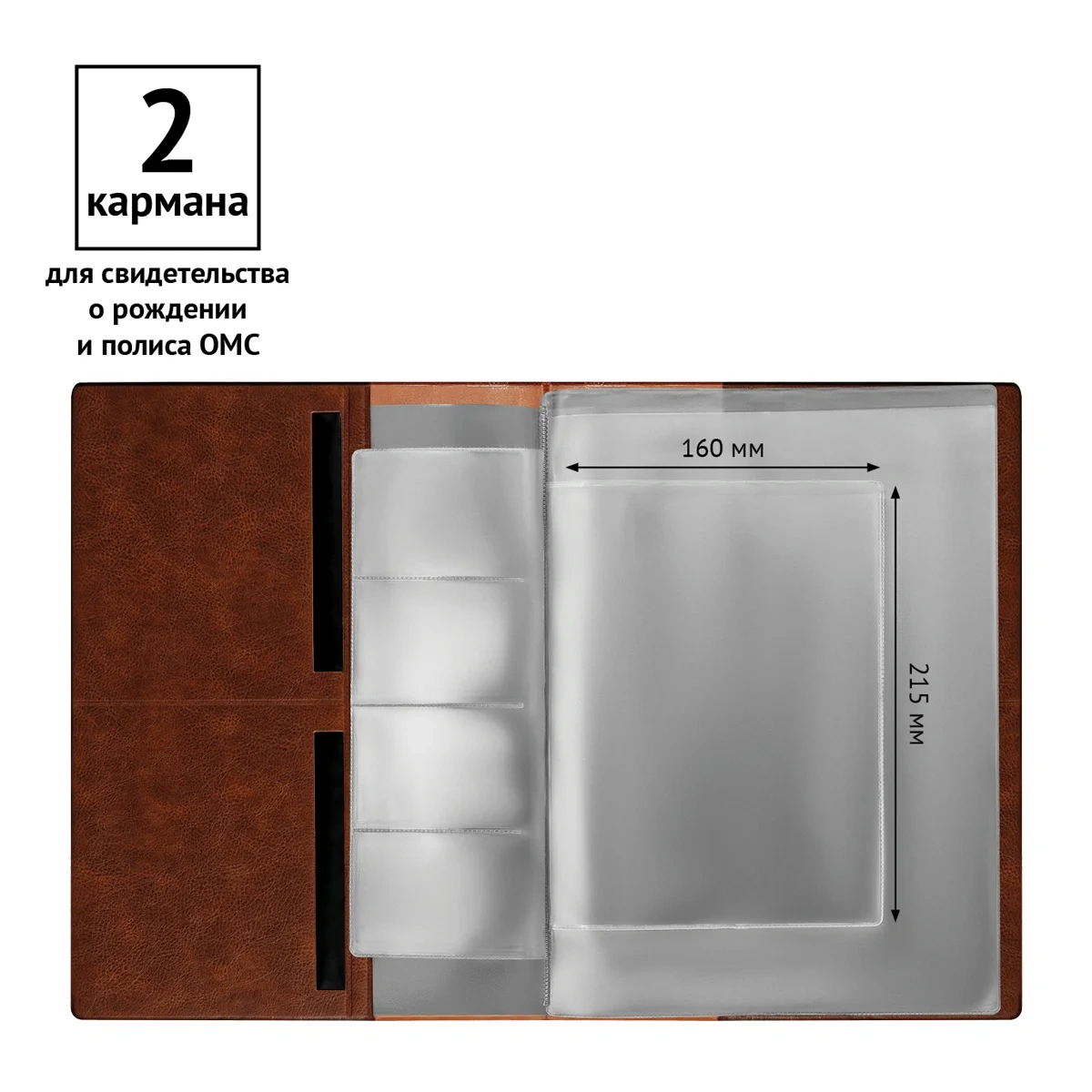 Папка для семейных документов А4, OfficeSpace, искусств. кожа, коричневая, инд. упаковка, ШК