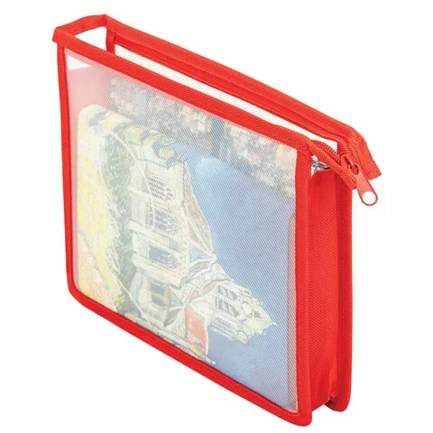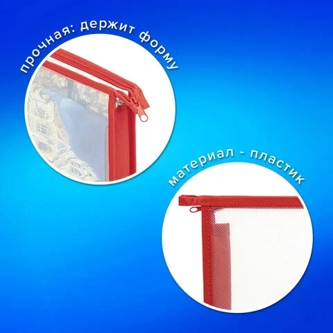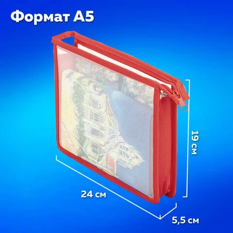 Папка для тетрадей ПИФАГОР А5, пластик, молния сверху, прозрачная, красный, 272114