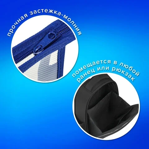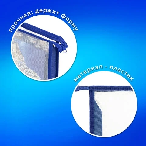 Папка для тетрадей ПИФАГОР А5, пластик, молния сверху, прозрачная, синий, 272115