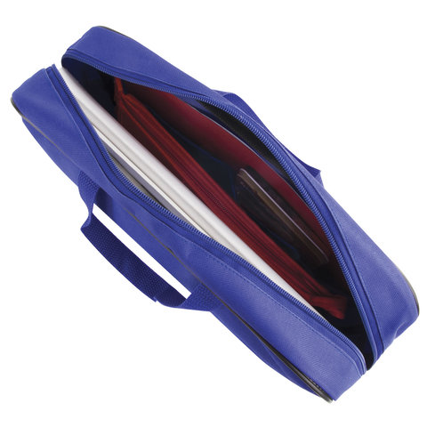 Папка для тетрадей с ручками ПИФАГОР, А4, ширина 80 мм, ткань, молния вокруг, синяя, 228375