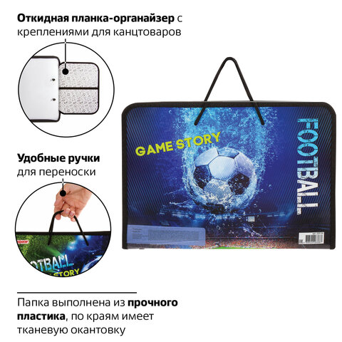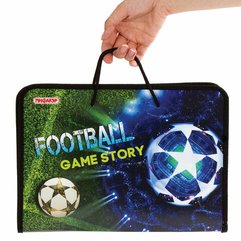 Папка для труда ПИФАГОР с ручками, А4, пластик, молния вокруг, откидная планка, 'Game Story', 229136