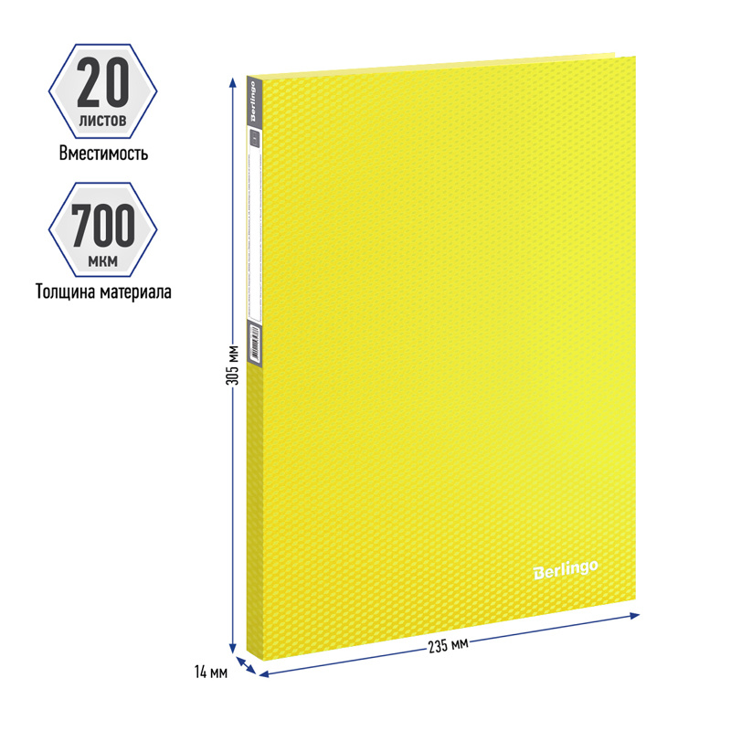 Папка файловая Berlingo Neon желтая, А4, на 20 файлов