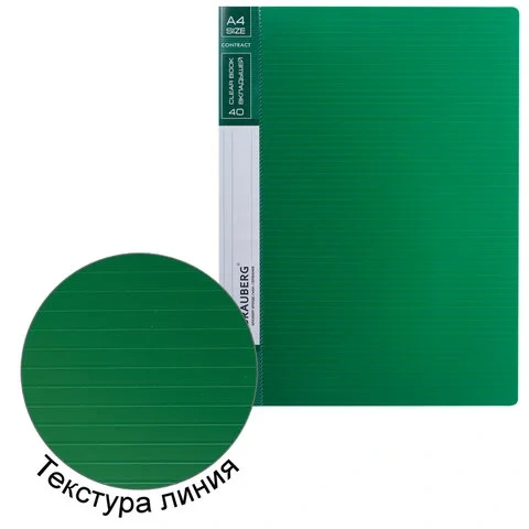 Папка файловая Brauberg Contract зеленая, А4, на 40 файлов