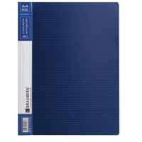 На корешке имеется карман для маркировки содержимого. Папка изготовлена из качественного пластика толщиной 0,7 мм с антибликовой линейной фактурой, а ширина корешка составляет 25 мм. Содержит 40 антибликовых вкладышей, позволяющих хранить документы формата А4 и обеспечивающих их надежную защиту от попадания влаги, пыли и прочих повреждений. Поставляется в индивидуальной упаковке.