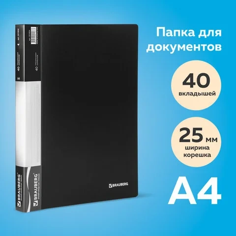 Папка файловая Brauberg Стандарт черная, А4, на 40 файлов