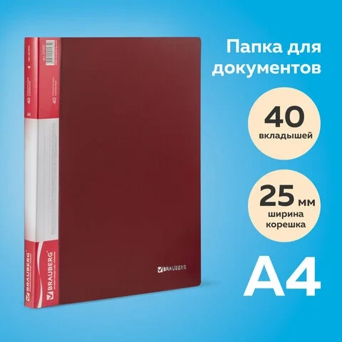 Папка файловая Brauberg Стандарт красная, А4, на 40 файлов