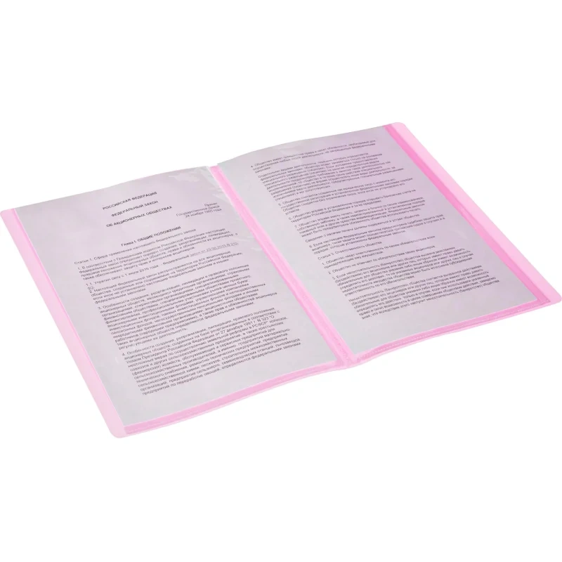 Папка с вкладышами изготовлена из полипропилена плотностью 0,5 мм. Поверхность с тиснением кожа. Предназначена для хранения и транспортировки бумажных документов. Надежно защищает документы от смятия и загрязнения. Плотность файлов 30 мкм.