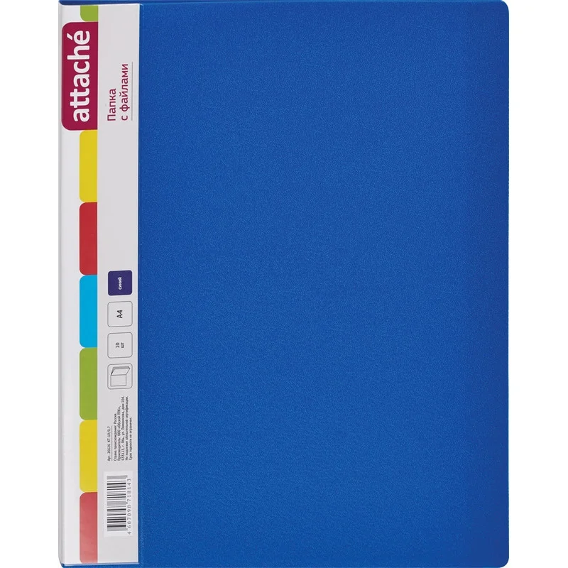 Папка файловая на спирали, 60файлов Attache Selection Black&Blue, А4,400мкм Папка файловая Attache Selection Black&Blue на кольцах. Обложка папки выполнена из полипропилена 0,4 мм. Канцелярская папка имеет 60 прозрачных вкладышей для удобного хранения и демонстрации Ваших документов. Удобное крепление на кольцах позволяет раскрыть папку на 180 без дополнительных держателей. Плотность файлов 300 мкм.