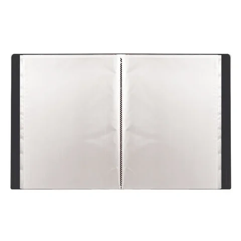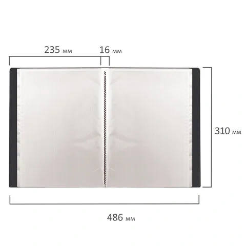 Для маркировки содержимого на корешок наклеена этикетка. Папка изготовлена из пластика толщиной 0,5 мм с антибликовой фактурой, а ширина корешка составляет 16 мм. Содержит 20 вкладышей, позволяющих хранить документы формата А4 и обеспечивающих их надежную защиту от попадания влаги, пыли и прочих повреждений.