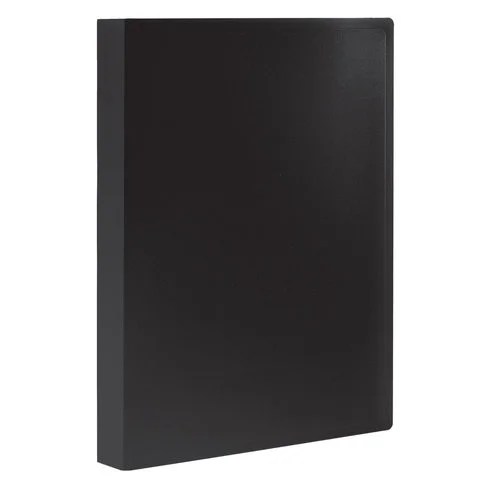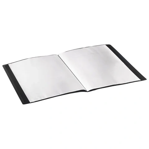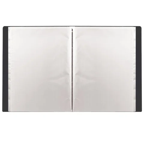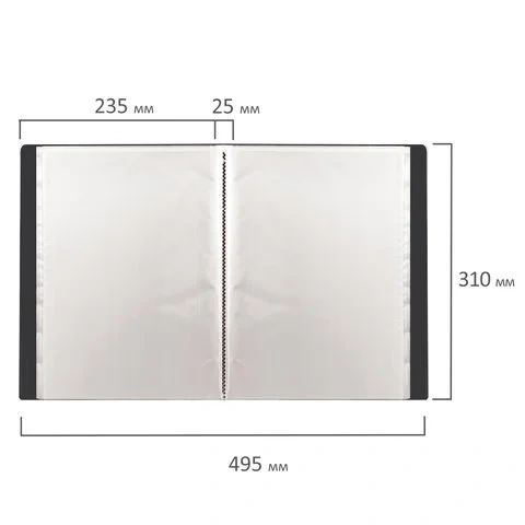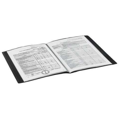 Для маркировки содержимого на корешок наклеена этикетка. Папка изготовлена из пластика толщиной 0,5 мм с антибликовой фактурой, а ширина корешка составляет 25 мм. Содержит 40 вкладышей, позволяющих хранить документы формата А4 и обеспечивающих их надежную защиту от попадания влаги, пыли и прочих повреждений.