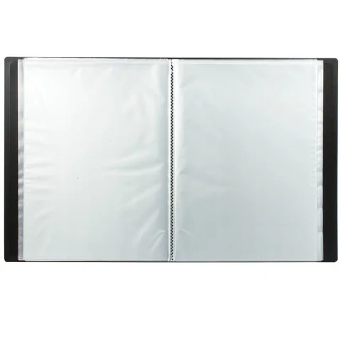 Для маркировки содержимого на корешок наклеена этикетка. Папка изготовлена из пластика толщиной 0,5 мм с антибликовой фактурой, а ширина корешка составляет 35 мм. Содержит 60 вкладышей, позволяющих хранить документы формата А4 и обеспечивающих их надежную защиту от попадания влаги, пыли и прочих повреждений.