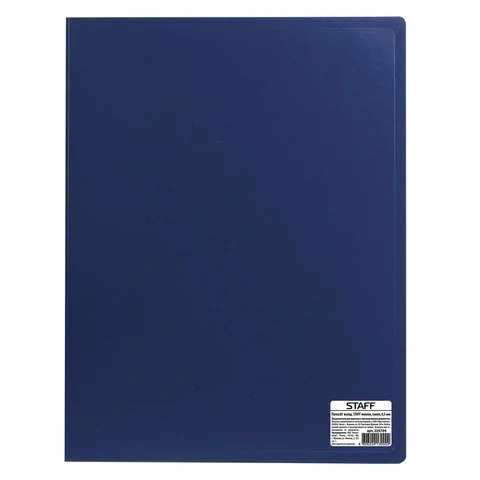 Для маркировки содержимого на корешок наклеена этикетка. Папка изготовлена из пластика толщиной 0,5 мм с антибликовой фактурой, а ширина корешка составляет 35 мм. Содержит 60 вкладышей, позволяющих хранить документы формата А4 и обеспечивающих их надежную защиту от попадания влаги, пыли и прочих повреждений.