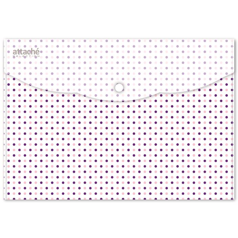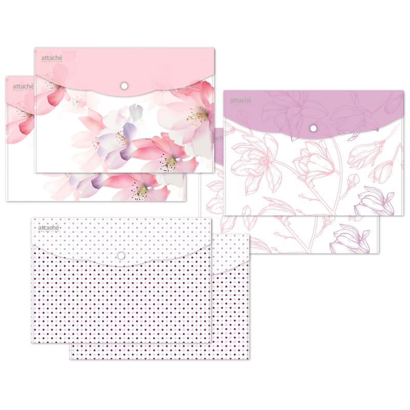Папка-конверт на кнопке Attache Selection Dreams формата А4. Папка-уголок сделана из экологичного полипропилена. 3 оттенка в ассортименте. Плотность: 180 мкм. В упаковке 6 штук. Папка используется для хранения документов.