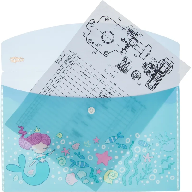 Папка-конверт на кнопке А5 1 School Русалка 2шт/уп