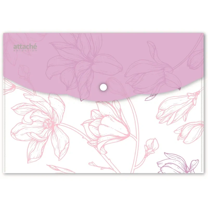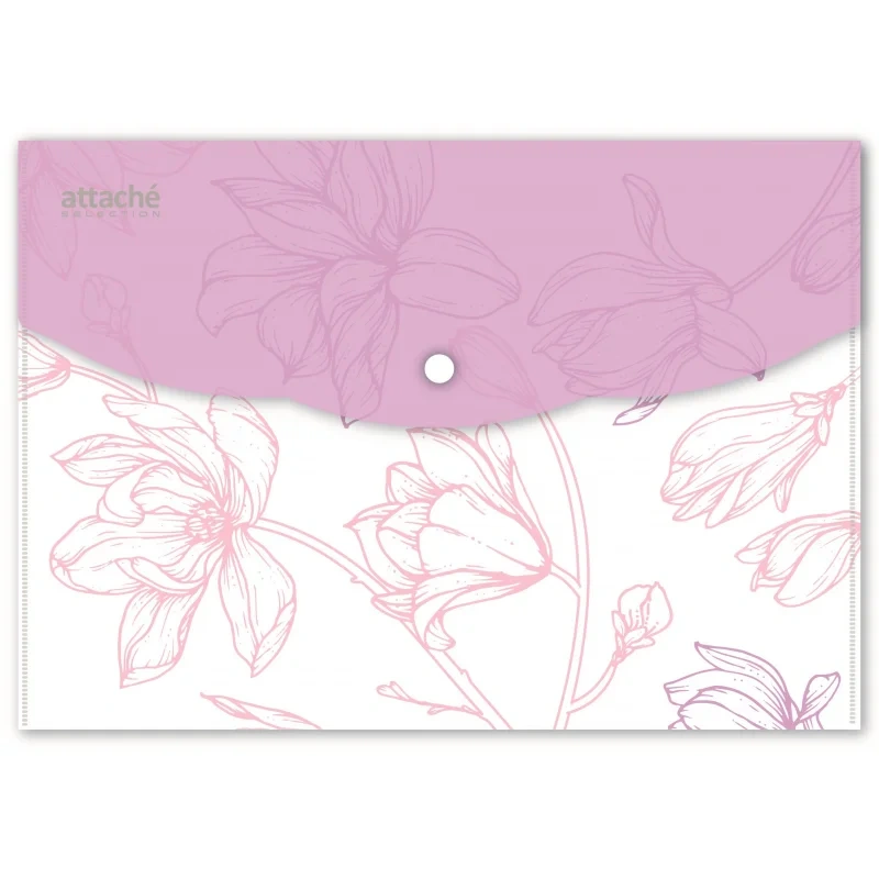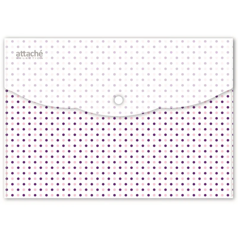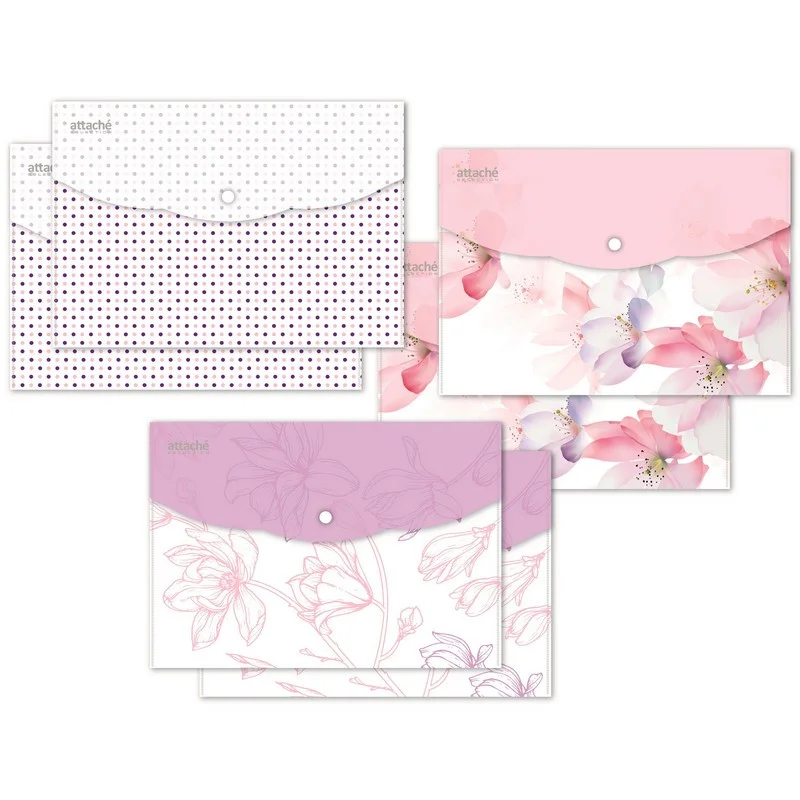 Папка-конверт на кнопке Attache Selection Dreams формата А5. Папка-уголок сделана из экологичного полипропилена. 3 оттенка в ассортименте. Плотность: 180 мкм. В упаковке 6 штук. Папка используется для хранения документов. Отгружается упаковкой, в упаковке будут изделия с дизайном, изображенным на фотографиях.