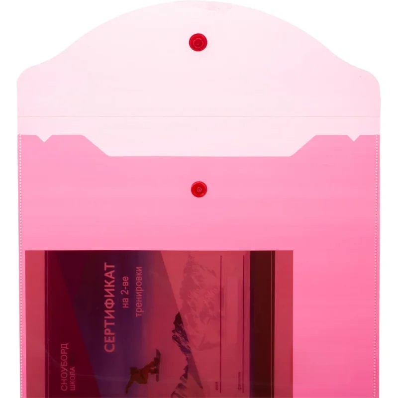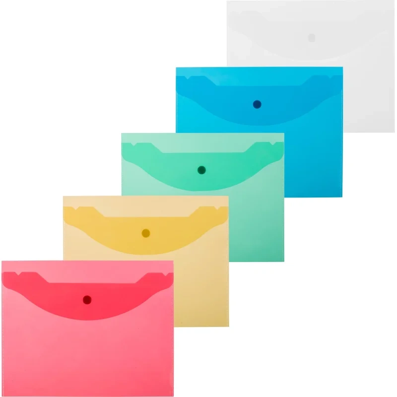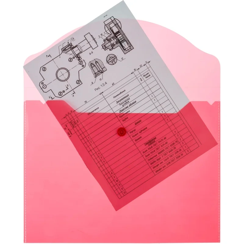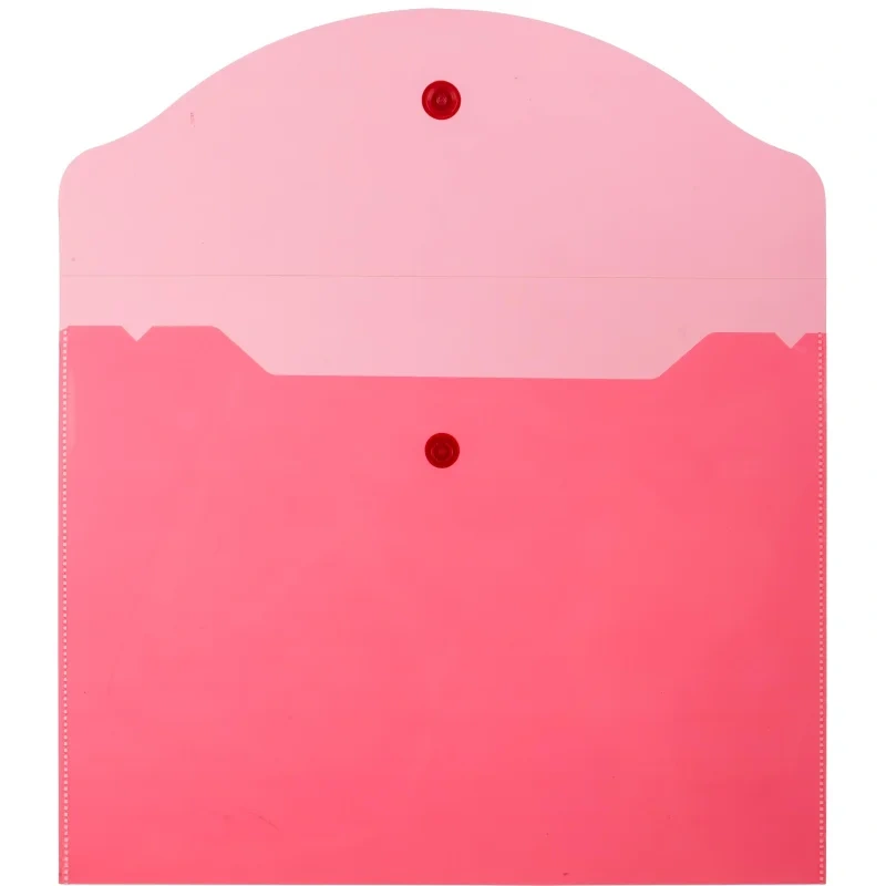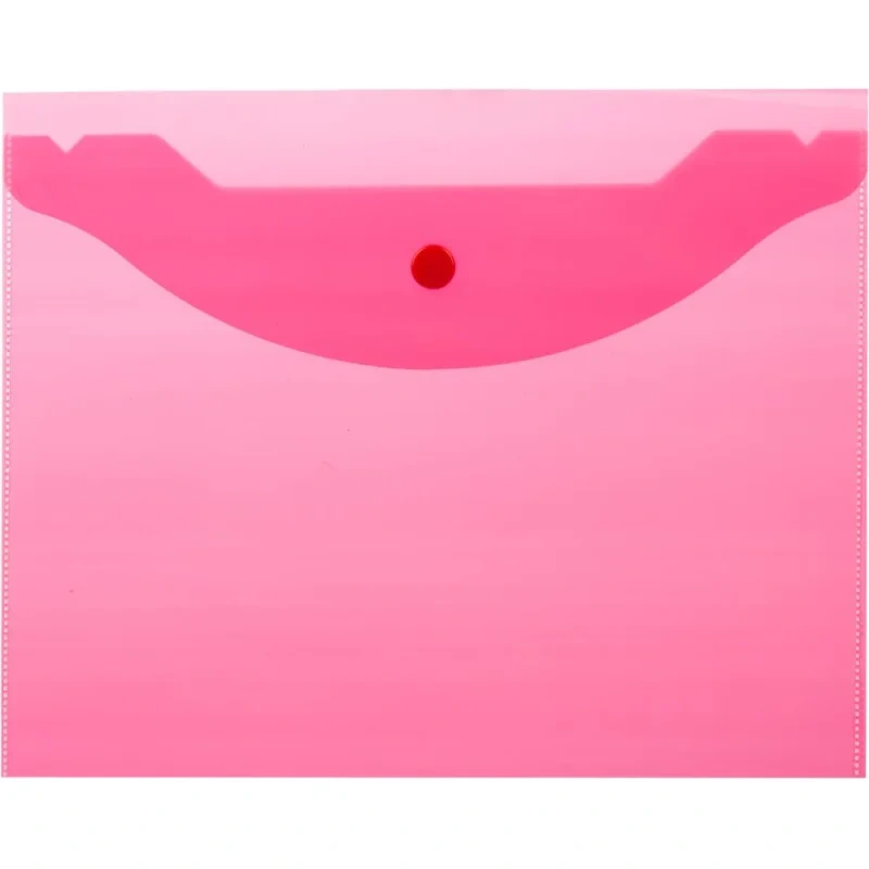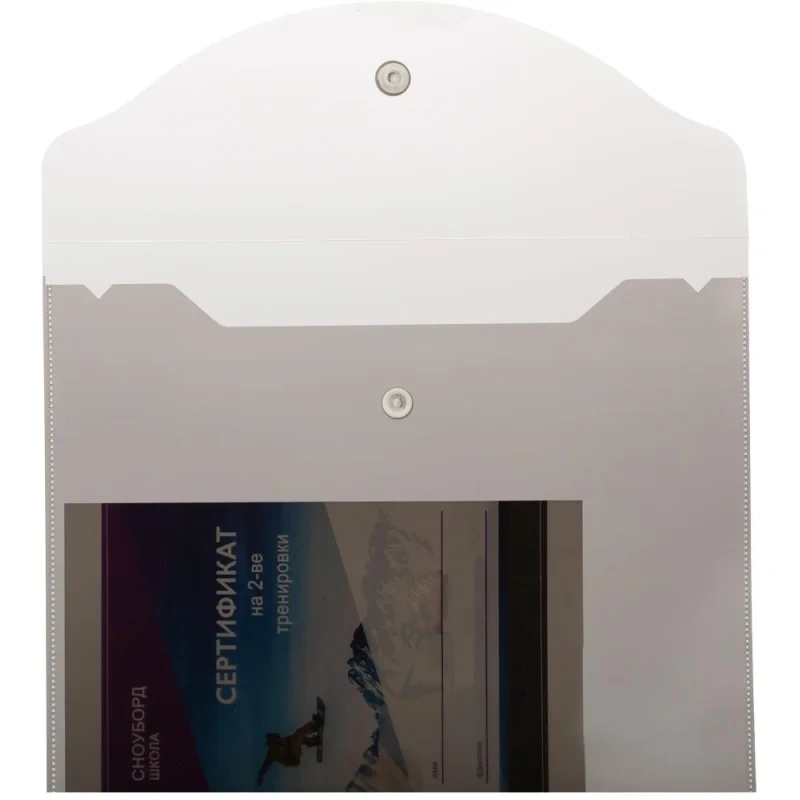 Папка-конверт размером формата А5 изготовлена из прозрачного пластика толщиной 0,18 мм. Закрывается на кнопку. Вмещает до 120 листов. Удобна для хранения и переноски документов, предотвращает их смятие и загрязнение. Размер: 190?240 мм.