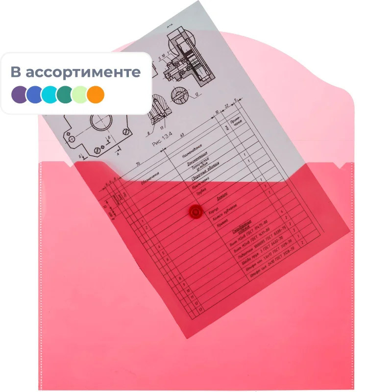 Папка-конверт на кнопке А5,190x240мм,Attache, 180мкм, 10шт.уп , ассорти