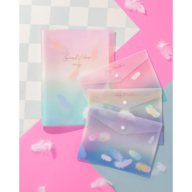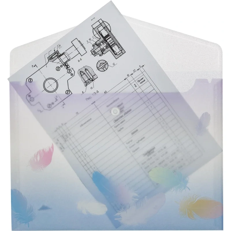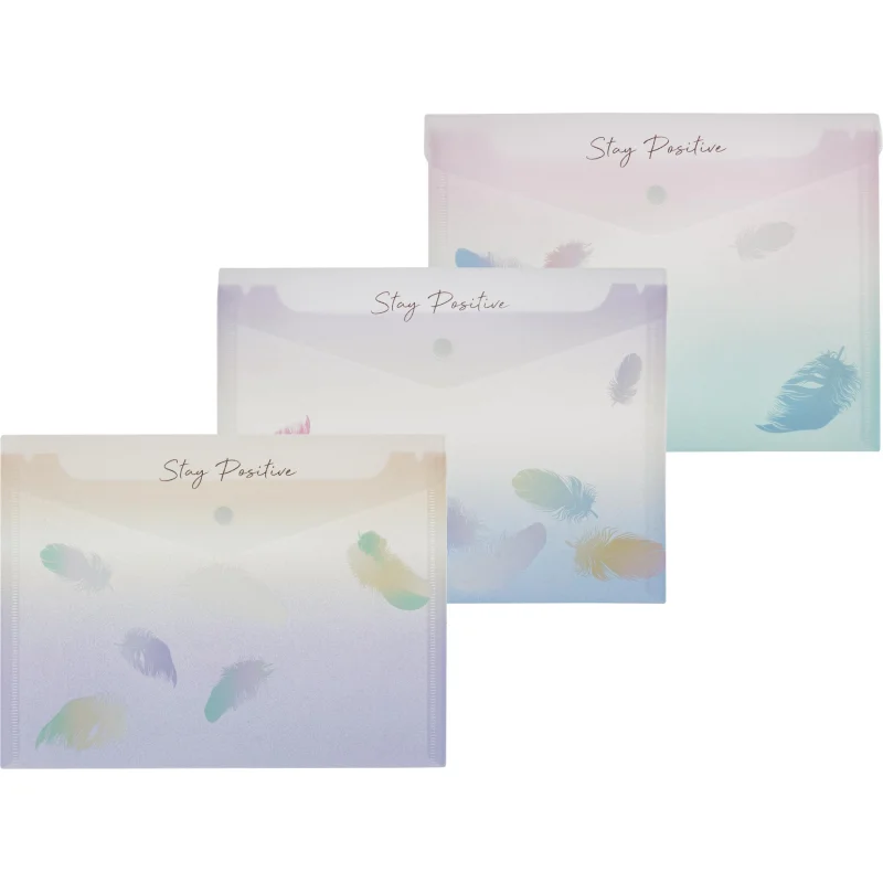 Папка-конверт на кнопке А5 Attache Selection Перья, РР, 3шт/уп, 180мкм