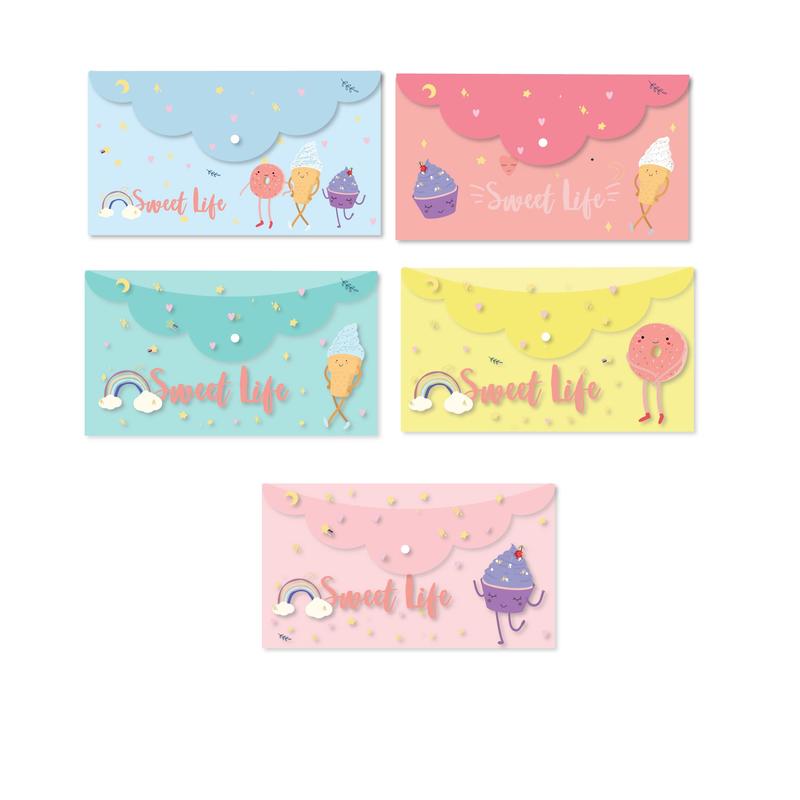 Папка-конверт на кнопке Att-he Sel-on SWEET LIFE 225х130мм200мкм асс 5шт/уп